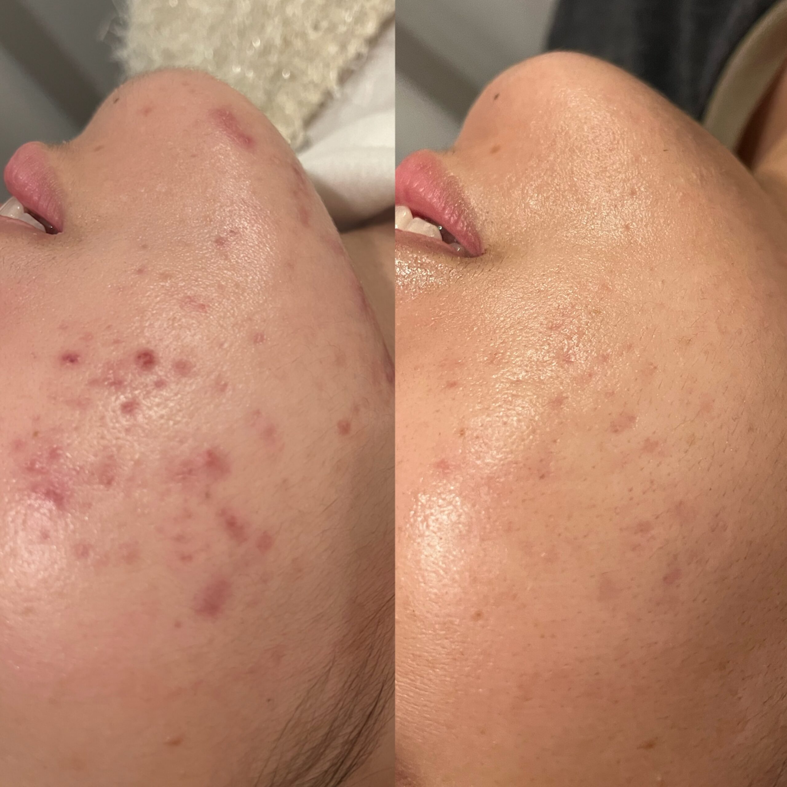 滅多にできないニキビが頬に出てきてしまい、数もどんどん増えてきて気分も落ち込み気味でした。スキンケアなどいつもより力を入れてやってみても中々治らず美容鍼をしてもらおうとこちらでお世話になりました。鍼は初めてだったので少しドキドキしていましたが、痛みはほとんど感じず安心して受けられました。週に2回のペースで通ったのですが、1回目で赤く目立ったニキビが少し薄くなり2回目ですっかりなくなりました。何をしても治らなかったのに鍼でこんなに効果が出るのかとびっくりしました。ニキビだけではなく、肌のトーンアップ、目が大きくなる、顔のバランスが整う、化粧のりがかなり良くなる、など他にもいいことづくしでした。担当の方もとても親身に話を聞いて下さり、家でのお手入れのアドバイスなども教えて下さいました。今回はニキビの悩みでお世話になりましたが、これからも綺麗な肌をキープするために定期的にお世話になりたいと思います。ありがとうございました!!